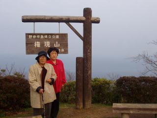 権現山展望台駐車場 港からここ展望台までの道路は狭く大丈夫か・・?10年前は、ホーミーで「狭いなー」と思っていたがクレソンで何とか・・・・。 登りの道はローギヤでゆっくりと・・・・・。 |