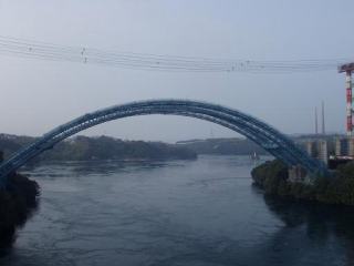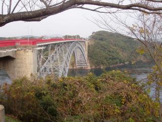 西 海 橋 久しぶりに眺めた。 昭和30年開通、 日本三大急流で有名な針尾瀬戸にかかっているアーチ橋、建設当時は東洋一の橋であった。 |