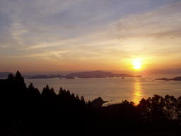 天草新和町にある 緑の村から見る日の出 (八代海を明るく照らしながら 登ってゆく) |