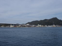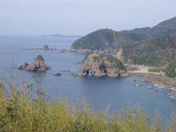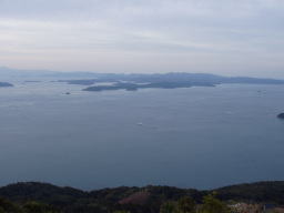 緑の村から長島方面を望む、 フェリーが航行している。 |