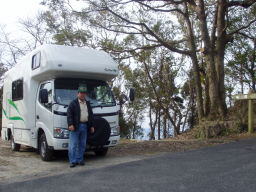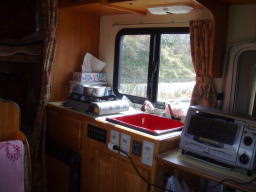 13仏公園の駐車場での昼食時(車内) トースタ使用時は、発電機を使用 |