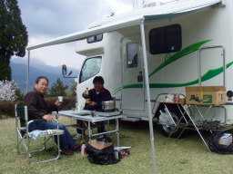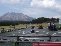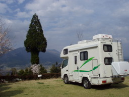 白川水源から県道111号(阿蘇パノラマライン)を走り中岳火口駅へ、この道は初めて走った道(福岡からは赤水からの道路が主で今回が初めて)展望のいい道でキャンカーには辛い道のりであったが、後続車がいなくのんびりであった。 |
