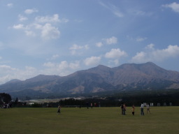 | ここで昼食(月廻り蕎麦)をした。 ここからは、阿蘇5岳がよく見える、また月廻り温泉(露天風呂)からも正面に根子岳が手に取りように見る事ができる。 公園では、大人も子供も同じように遊ぶ事ができる。 根子岳を見ながら一日中楽しめる場所である。 |