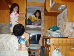 帰りのキャンカーの中二人で騒ぎ回っている、ばあさんが何言ったて聞く耳持たず(信号待ち時に撮影)