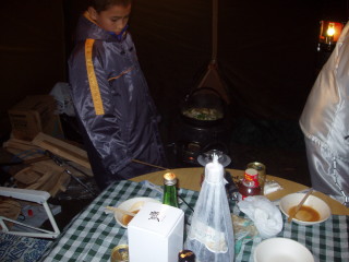 到着したのは、1530(出発は1100) 急ぎ3ポール・スクリーンタープを建て、夕食の準備 |