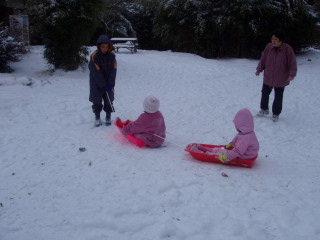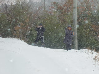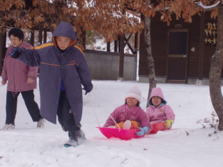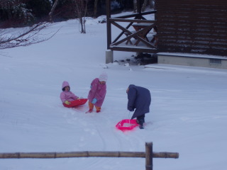 | 雪の中をはしゃぎ廻る、孫達 | ||