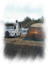 テントの撤収も済み、さあ出発だ。今日も天気が良さそうだ。 |