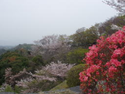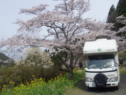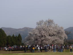 ここ高森峠は阿蘇外輪山の南東部に位置し、通称九十九曲がりと呼ばれているカーブの多い道路(昔の国道)の曲がりくねった道沿いに、ソメイヨシノが千本桜と呼ばれ県下の名称の一つである。 |