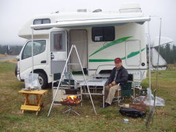 ゲストを連れてのキャンプは、あいにくの天気、しかし天気成ることを祈っての出発である。