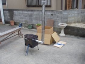 | マックが購入した「ちびストーブ」組み立てテスト | ||