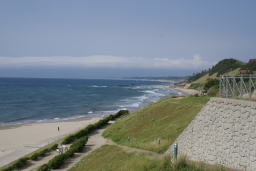 島根県江津市波子町の岩見海浜公園から見た海岸 公園の駐車場にて |