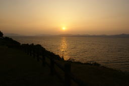 宍道湖に写る夕日 ここは、鳥が崎と言う地名であるようだ、標識がないのではっきりしたことは分からない。 |