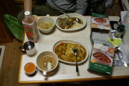 今日の宿泊場所は対岸の、秋鹿なぎさ公園へ松江を通り向かった。 ここは駐車場が狭く発電機を廻すことが出来ないので、ガスコンロを出してお湯を沸かし「レトルト食品」を温め夕食とした。カロリー450キロカロリー 飲み物は、お茶及びノンカロリー飲み物水など。少なければ、蒟蒻ゼリーなどを口に入れる。 |