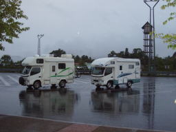 朝起きてみると、隣にキャンカーが泊まっていた彼らも深夜高速へ入り割引で走ろうと思っているのだろう。確かにこの深夜割引は魅力である、30%オフは