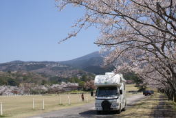 | えびの高原から丸尾温泉へと下ってきた、ここに高原国民休養地(馬場にオートキャンプ場がある)の桜は今が見所。 |