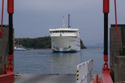 フェリーは平成4年就航の1400t、この航路には平成18年に就航、フェリーは他の航路から回ってきたのだろう設備を見ると外用航路の様式のようであった。