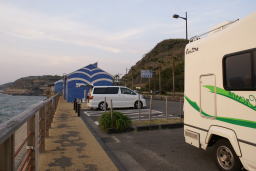 南さつま市加世田に入り16時を回っていたので、オートキャンプ場に泊まるつもりで入り口まで行ったが、「未だ時間が早い。」と言いだしたので、目をこずりながら阿久根の道の駅まで向かった。