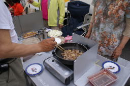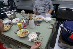 今回は、もっちゃん一人で来たから右下の感じ、(一寸寂しかったが、暗くなるとどこからか色々な料理が出てきました。) |