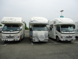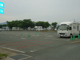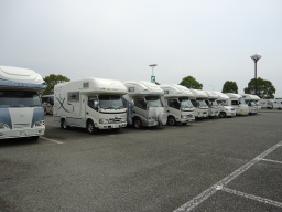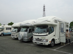 | 明くる日の駐車場、そこには多くのキャンピングカーが駐車していた。 | ||
