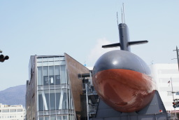 その後は隣のクジラ館へ、海上自衛隊の広報館、廃船になった潜水艦をそのまま展示している、ゆえに中は狭いくて