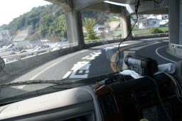 高速道路を走る、途中で事故に遭遇したが渋滞には遭わずに下松SAまで前進して車中泊 |