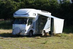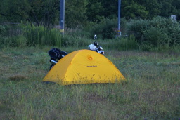 夜には車中泊のテントが