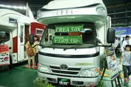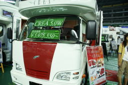 | 平成22年10月9日 博多でキャンカーショー 多くのキャンカービルダーが集まるので楽しみに出かけた。ところが義母も付いてきた、車好きな義母はたまらないだろう。ところが車を見るのではなく、自宅から展示場までのドライブが目的であったようだ。 そわそわして「早く帰ろう、まだ終わらんとな!」 本題に入るが、入り口で社長に会ったので早速担当者の○藤さんと話を進めた。 新型車の車で5.3に、装備は現在の設備を設置する。 つまり、発電機、自動追尾式衛星アンテナ、家庭用のエアコン、冷蔵庫は90g、給排水は100g、ソーラー1枚等々の話を進め契約 納車は、今のところ来年の3月頃とのこと (待ち遠しい・・。) |