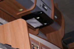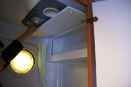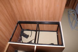 | テーブルは、上げ下げ式 左のランプコンセント、その上は クーラの吹き出し |