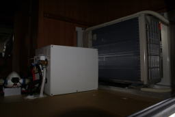 | 家庭用エアコンを設置 屋外機をベッド下に設置 |