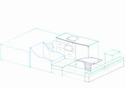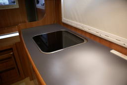 | キッチン、右端に見えるのはコンセント | キッチン、ガラス蓋付きシンク | ||||
