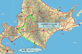 別海町のキャンプ場から開陽台へ 足寄町の道の駅へ寄り、高速道路を利用して 上富良野町のオートキャンプ場へ |
