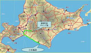 穂別町のキャンプ場から千歳へ 空港へ迎えに行く(義母、X、マック) その後、キャンカーで三石温泉蔵三へ |