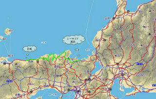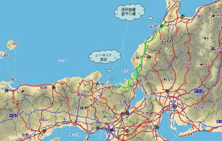 白兎から米子、松江、出雲、浜田を通って 石見空港近くで、夕日を撮影 その後、道の駅「阿武町」へ |