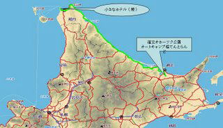 小樽から砂川まで走り、仮眠 砂川から留萌を経由して稚内へ ノシャップ岬の「小さなホテル(燈)」へ |