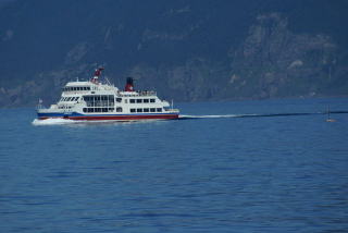 1230の船に乗る、500t足らずの船に400名の客1時間半の船旅であるが、船内は団体客で大変1230の出港と言うことで船内で弁当を食べ始めた、後はおしゃべりとゴミの山