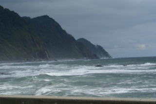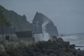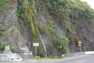 | 黄金海岸に入ると波が強く道路は潮水だらけ、また安全に通行が出来るように内陸側にトンネルが掘られている、おかげで見学する方はあまり景勝の地を見ることが出来ない。 |