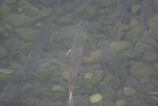 帯広の人がきて話していた「漁協がここで鮭を取る為にしている。卵を取りふ化させるのである」「カラスはその辺で生み付けられた卵を食べるんだ」「上流に行っても産卵後は雌は死ぬのみ、死んだ鮭は食べられない。そこで熊の餌になる」などと話していた。