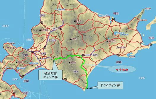 日高町の道の駅「樹海ロード日高」でオートキャンプ場の予約を入れ、「穂別オートキャンプ場」へ向かう。時期が時期だけに空いていたようだ、また北海道の「キャンピングガイド2007」という本を購入していたので、キャンプ場を探すのがとても楽である。
