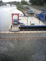 橋の上から鮭を見ることが出来る水が澄み切っているのでよく分かる。 |