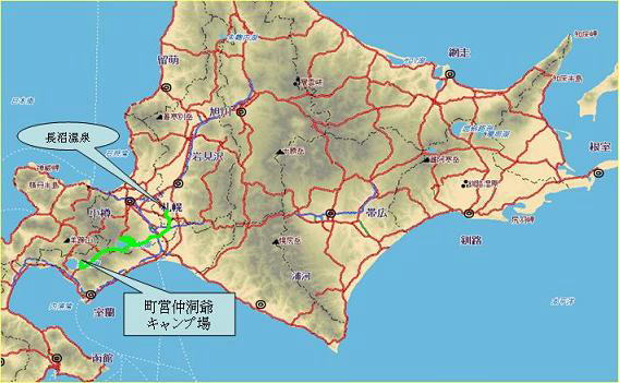 ここにオートキャンプ場がある「美笛キャンプ場」行く途中大変な悪路に悩ませながら入り口まで着いたが、入場料が1000円とお高く電気水道がない、で、引き返し洞爺湖へ行くことにした。