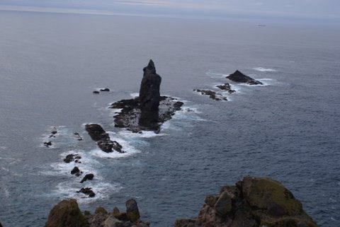 ローソク岩の名前の由来は、形ではなくて、まだ岩が丸かった頃、ニシンを追ったかもめの群れがびっしりこの岩に糞をして、そのリンの成分が夜になると、ぼーっと明るく見えたからだという。