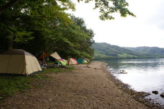洞爺湖町営「仲洞爺キャンプ場」は湖畔のゆっくり出来るキャンプ場である。 |