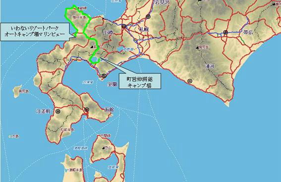 ルスツを出て、倶知安へここで目的地を探す、今日は早くキャンプ場に入ろうと思い岩内のキャンプ場を探した。でも走っている内、積丹半島を廻ろう考えルートを変更。
