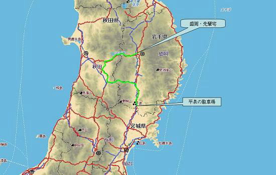 大曲市から横手市を通り北上川沿いの国道107号線を走り、山越えをして北上市へ、ここからは国道4号線を水沢市に向け走る。