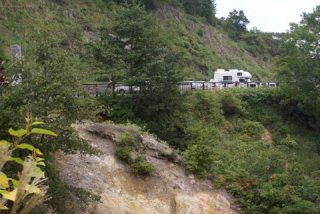旧道の橋の端から駐車場のもっちゃん号 |