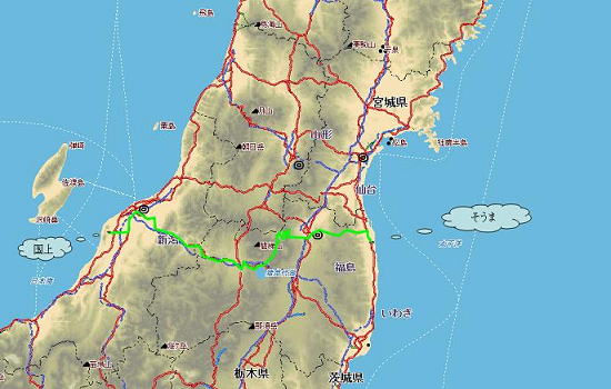 だいたいの計画を頭にたたき込み、まずは、今日中に新潟まで向かう為、福島へ向かいました。 |