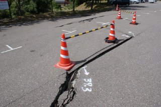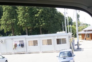 | 道の駅「風の丘 米山」ここでも仮設プレハブが多くあり、近くの崖崩れが起きそうな所に家がある人たちが今住んでいる。 道の駅のおばさんの家も赤札だそうです、なかでも審査をする人は他県から来た人が審査をするそうです。 家が傾いていても青札で住んでもかまわないそうですが、実際にはゴルフボールが転がる家では住めないよね、その様な家が結構あるそうです。 |