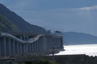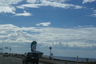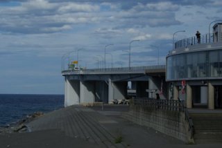 | ビデオを車のフロントに据え回しながらの運転、対向車も多いこの道を、のろのろとは走れない。 道の駅「親不知」で一息付ける。 海岸線はなく断崖である、高速道路がその海側を走る写真になる場所である、また夕日が綺麗であろうな〜。 |