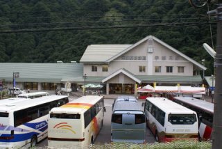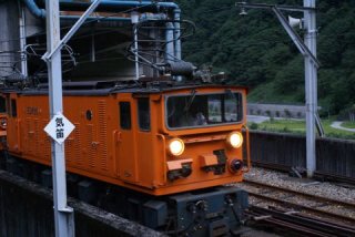 親不知を無事通り抜けると、富山県にはいるすると「左 宇奈月」の標示が見えた。 「そうだ行ってみよう」と言うことで進路を左に取った。 R8からわずか17kmであったが県道で走りにくい、宇奈月駅に着いたのは16時を廻っていた。 |