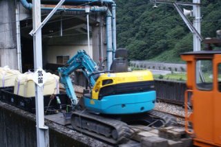 | 1705発の作業車が発車した。 何処まで行くのか知らないが??? 可愛い電車である。 |